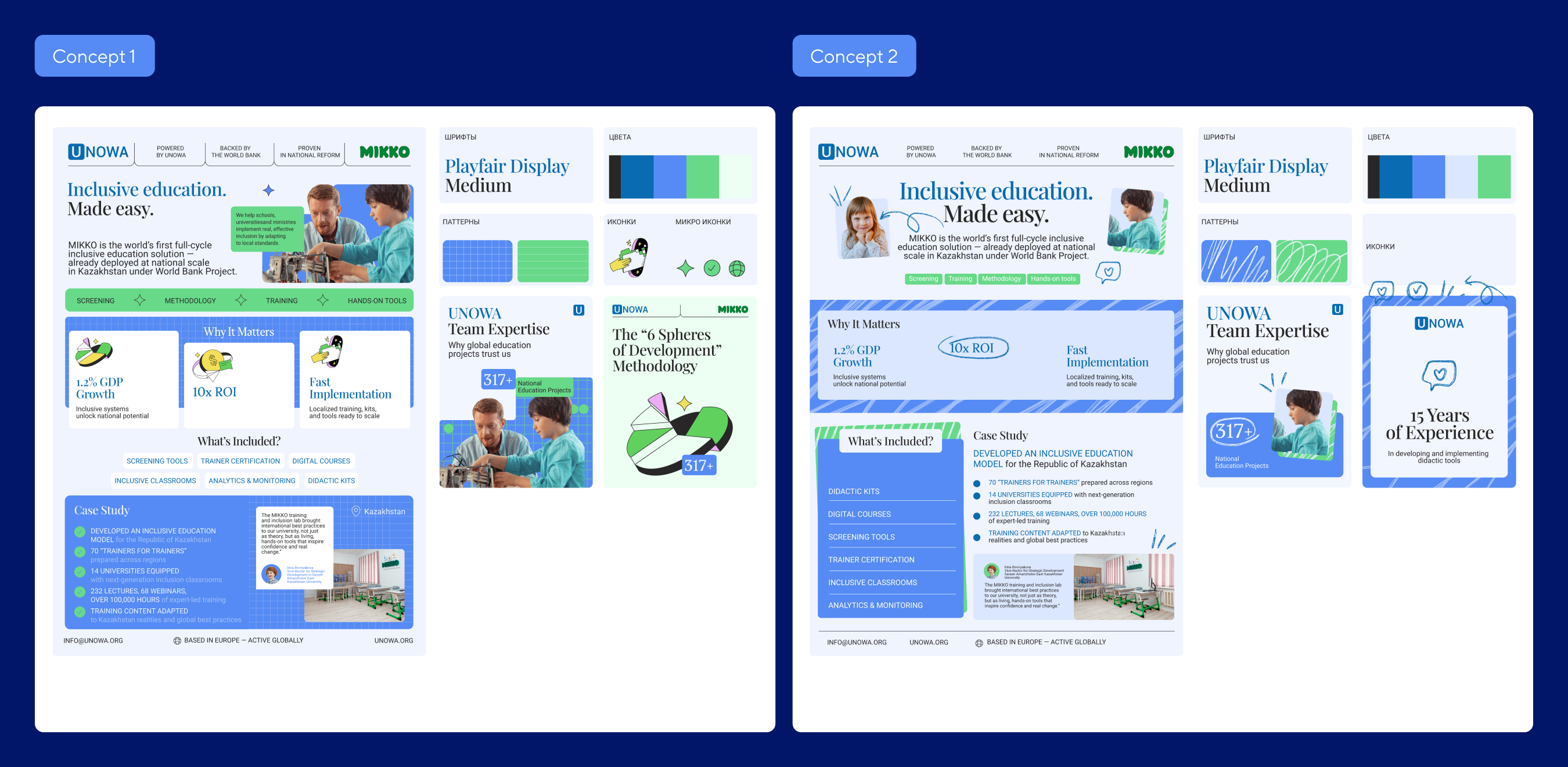 From there, selected elements were combined into a final direction and applied to a real one-pager layout. This made the design practical and helped the team see not just how the brand looks, but how it performs in context.
