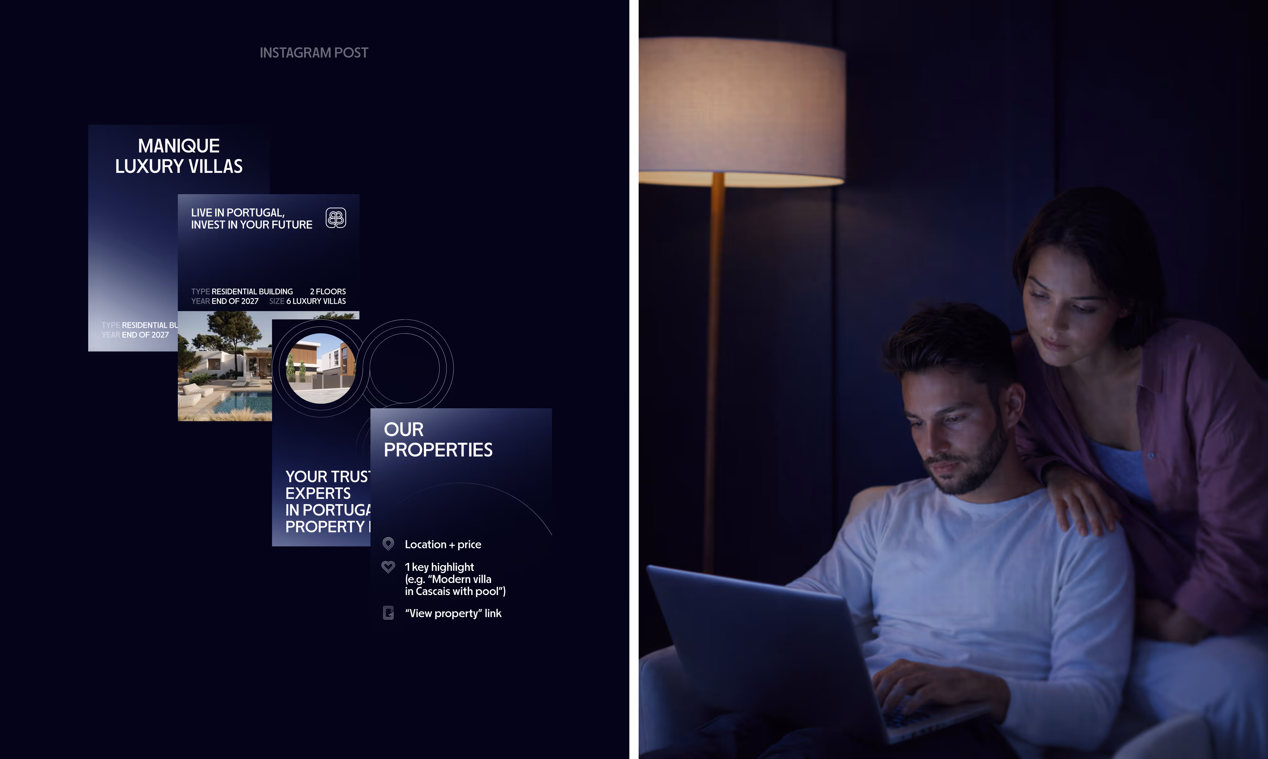 We developed a visual identity for Bravestone, a real estate company that helps clients buy property in Portugal. We shaped the brand for a premium audience, creating a sleek, confident visual style built around a meaningful symbol.