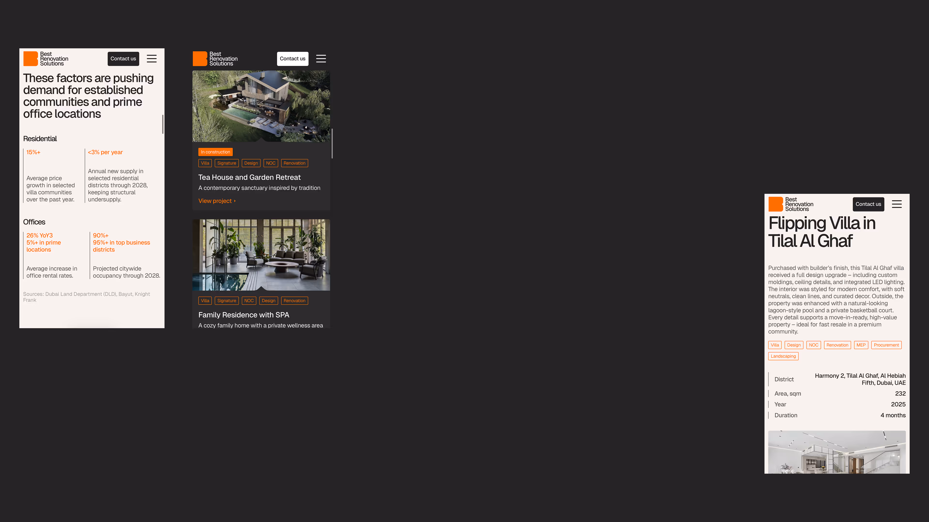 Best Renovation Solutions is a company that provides full-cycle renovation. They handle everything from design and approvals to construction, working with villas, apartments, offices, and retail spaces.