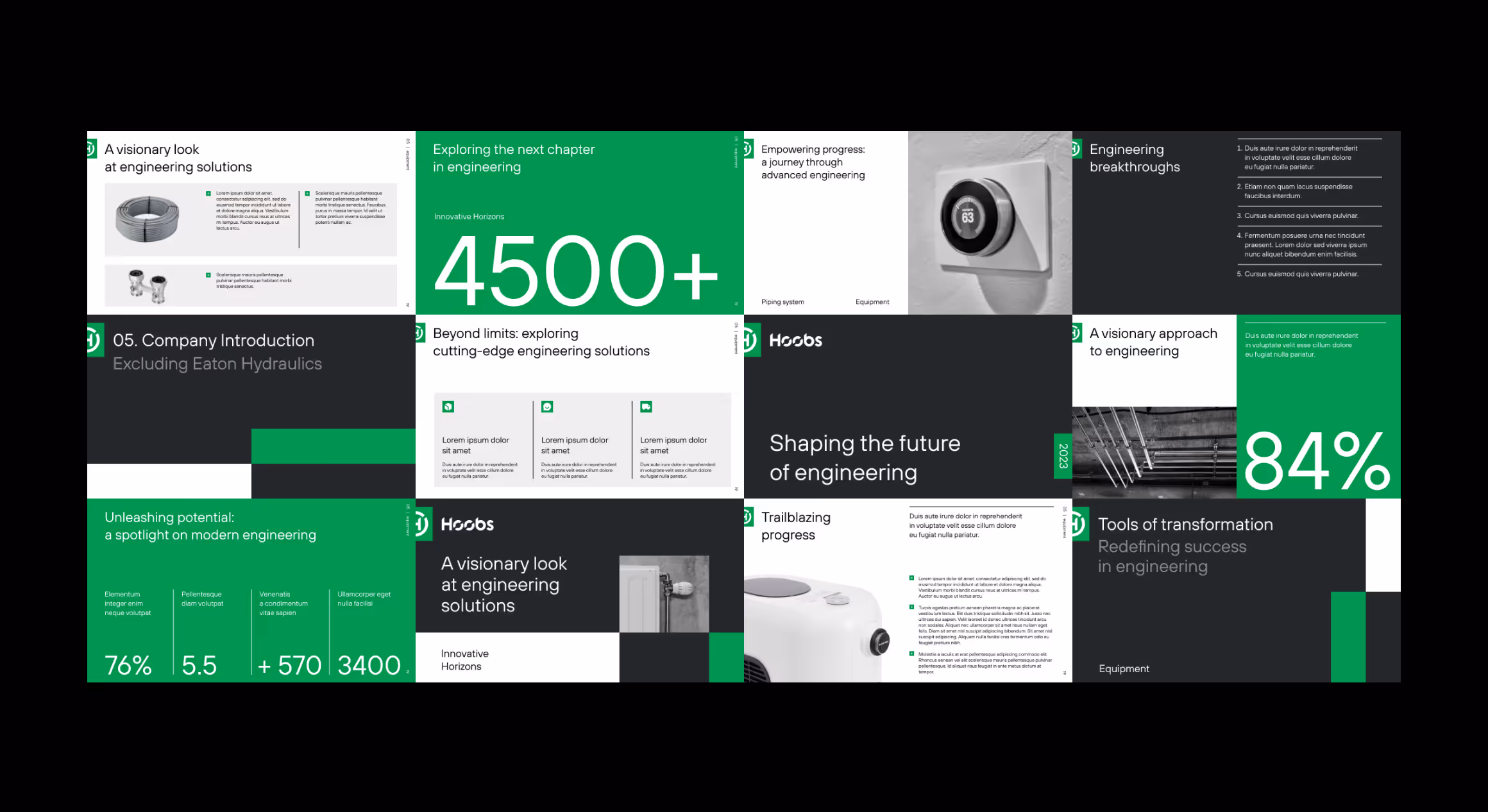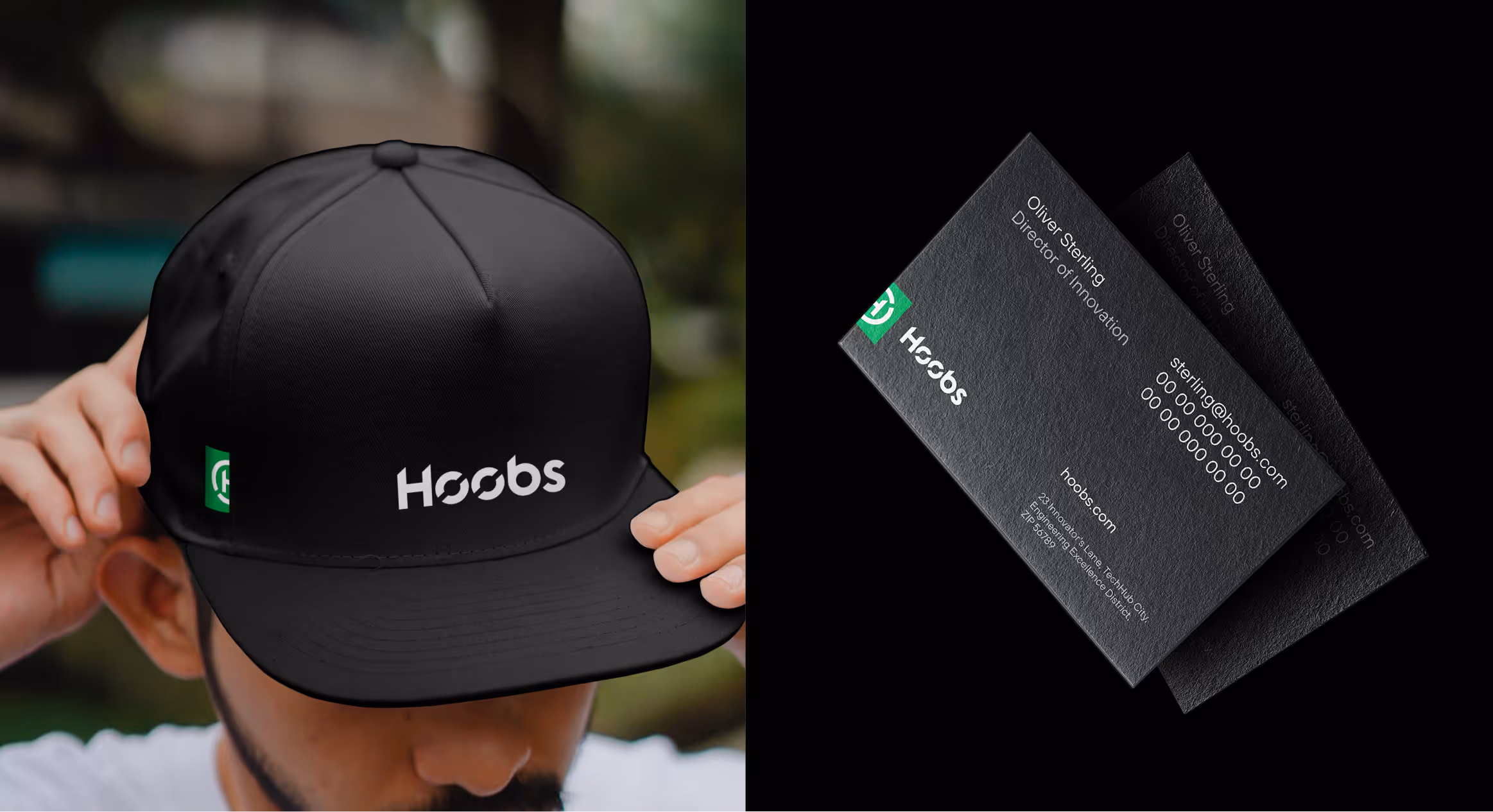 In a field where blue and red reign supreme, we dared to be different. Opting for dark grey and green tones, our minimalist design and distinct typography speak volumes about the quality Hoobs brings.
