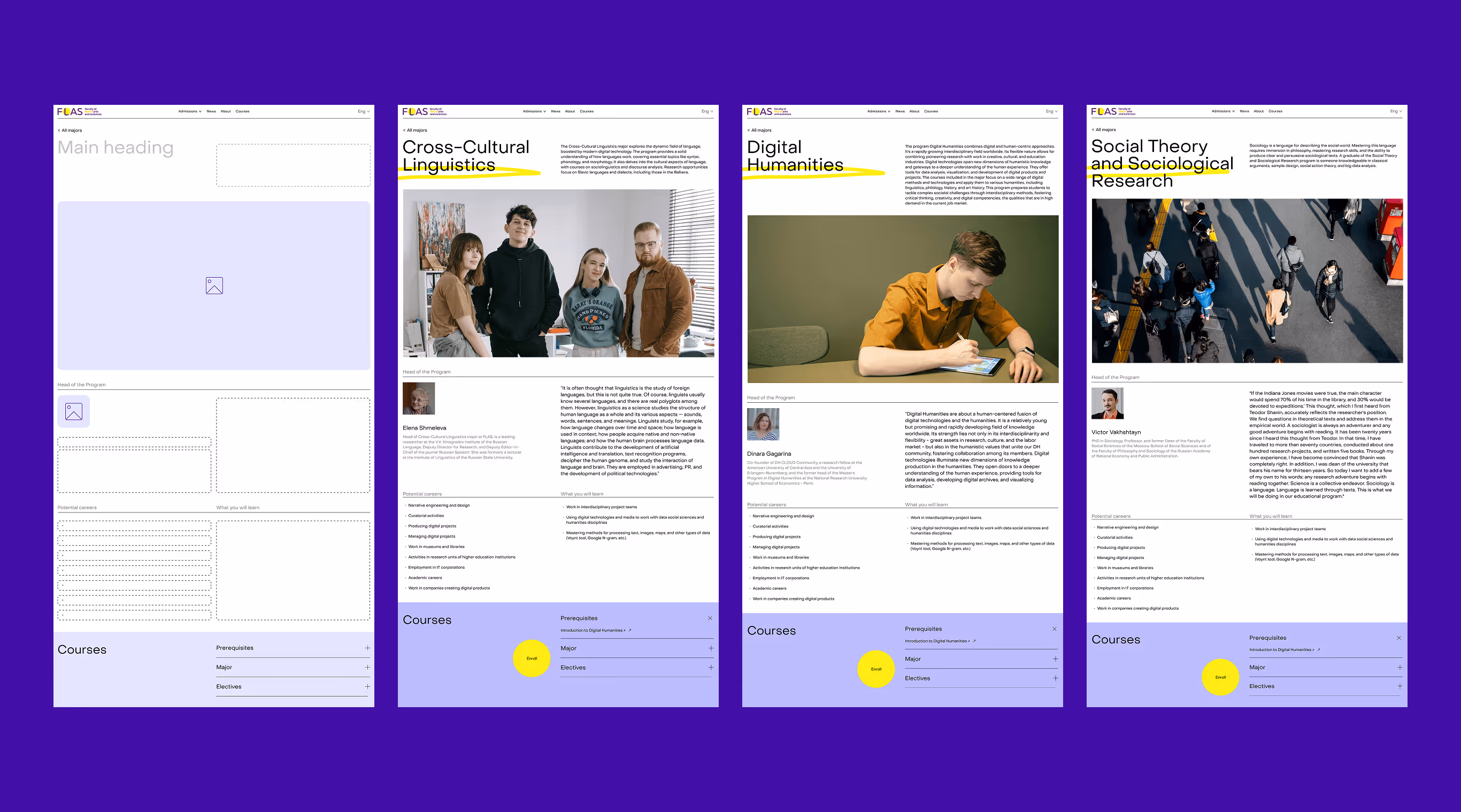 We began by creating the site architecture, prototyping, and writing the content. The website is multilingual, supporting three languages, which we kept in mind throughout the process. Additionally, some pages were designed as templates, which we also accounted for in our approach.