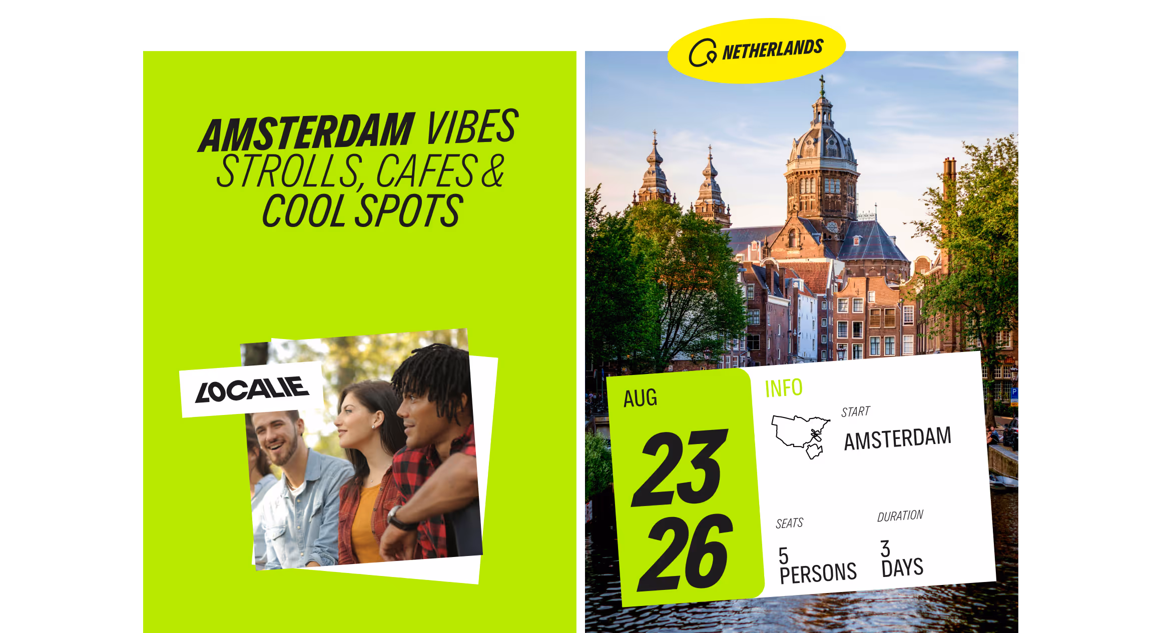 We developed a brand identity centered around bold typography and vibrant colors. The design reflects Localie’s adventurous, open-minded ethos, tying each product together visually while standing out across both digital and physical touchpoints.